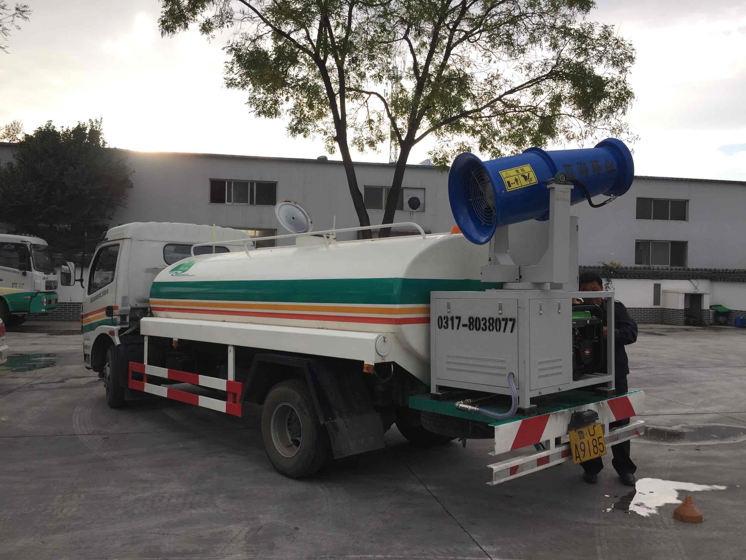 霧炮車(chē)噴射的水霧顆粒極為細小,達到微米級,在霧霾天氣可以進(jìn)行液霧降塵、分解淡化空氣中的顆粒濃度,能有效的分解空氣中的污染顆粒物,塵埃等,有效緩解霧霾,購置這樣一個(gè)大家伙,可以將漂浮在空氣中的污染顆粒迅速逼將地面,達到清潔凈化空氣的效果。 該車(chē)負載的大型霧炮可噴射120米遠,70米高的水霧,相比普通的灑水車(chē),另外,同樣10噸水,普通灑水車(chē)只能?chē)姙?0分鐘,而新型的霧炮機可以噴灑1個(gè)小時(shí),覆蓋面積超過(guò)3萬(wàn)平方米,大大提高了水資源利用率。