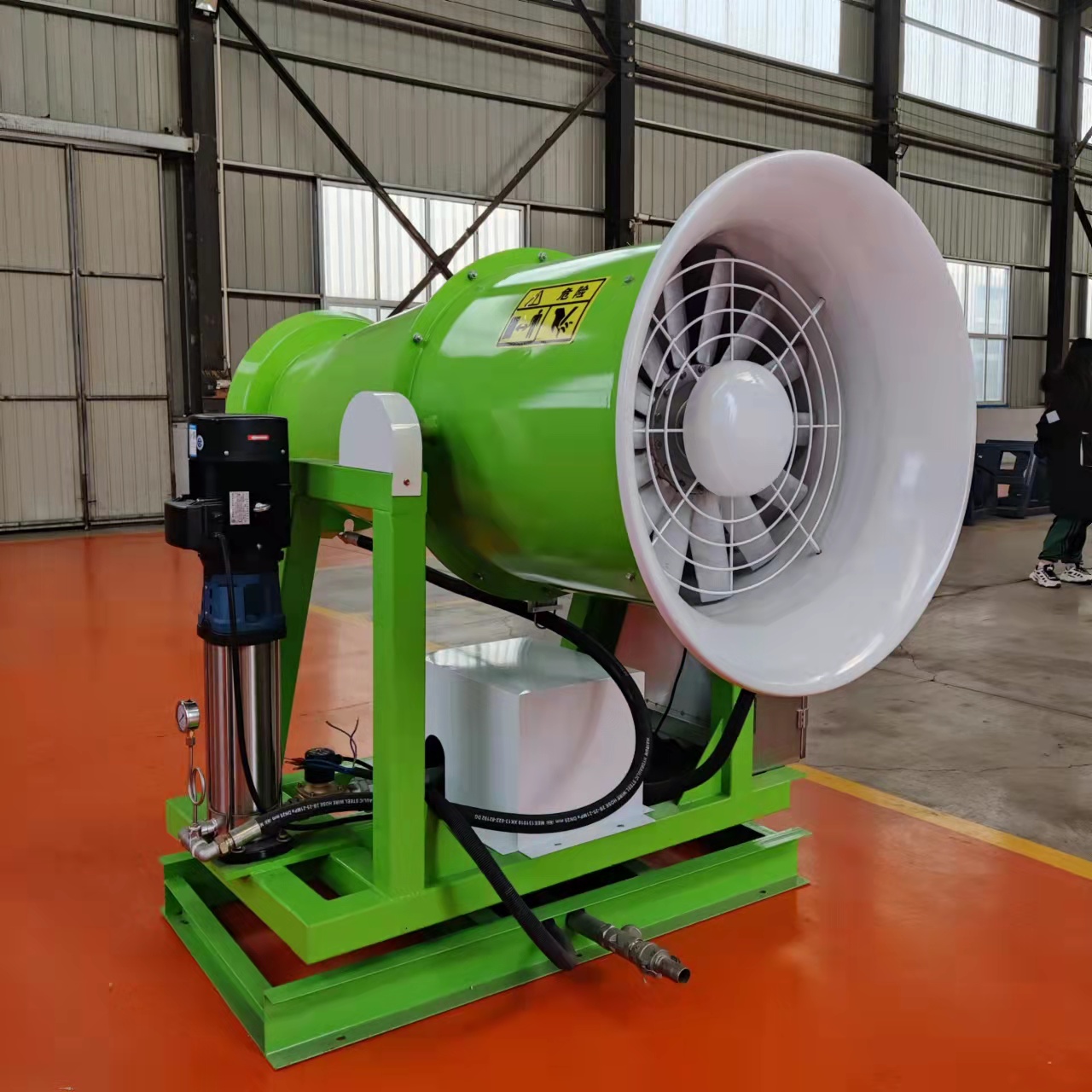 2、風(fēng)力強勁、射程高(遠)、穿透性好,可以實(shí)現精量噴霧,霧粒細小,能快速將礦區堆場(chǎng)塵埃抑制降沉,工作效率高、速度快,其覆蓋面積遠遠大于其它抑塵噴灑設備;